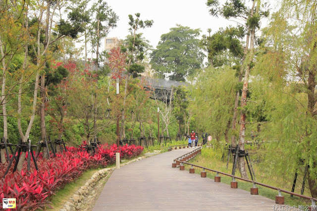秋紅谷白天、晚上也截然不同,白天像徜徉在陽光下的綠洲,讓人可以非常放鬆的嬉戲、奔跑,晚上就像月光下的仙境,讓人不自覺的放慢腳步,感受秋紅谷的浪漫風情。